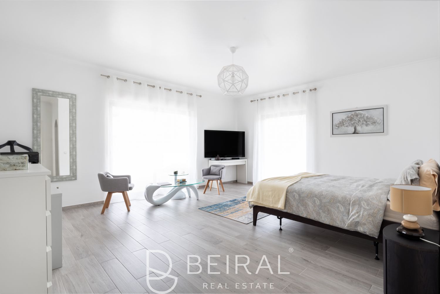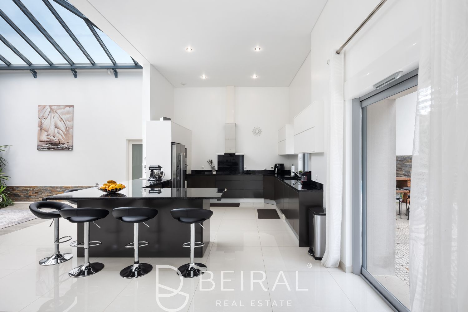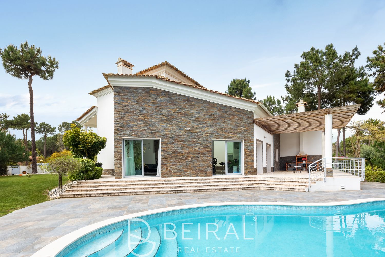 A moradia conta ainda com uma impressionante garagem de 200 m² com ginásio e sauna de infravermelhos. No exterior, um magnífico jardim de 2338 m² com piscina aquecida virada a sul e furo de água oferece um ambiente de total privacidade e bem-estar.